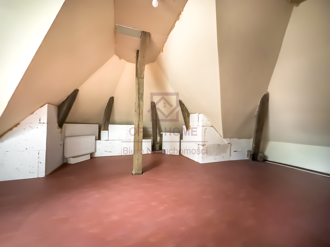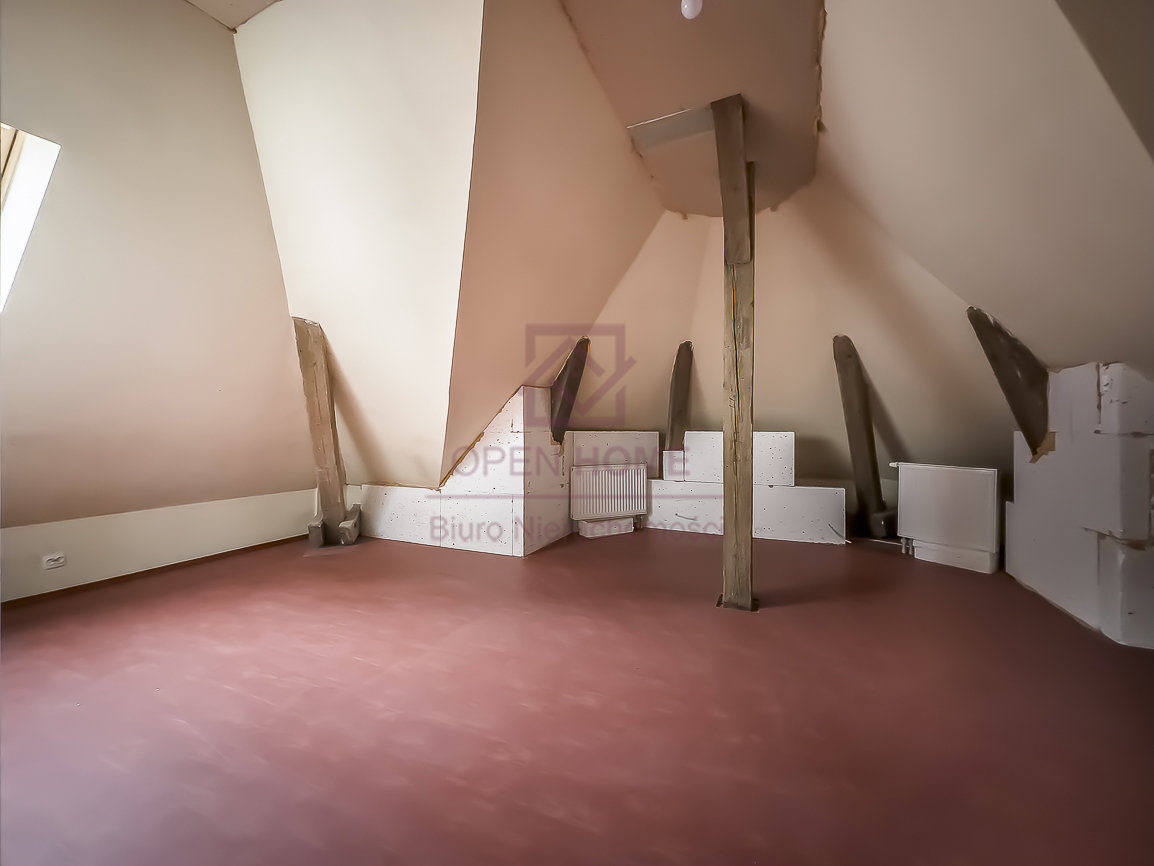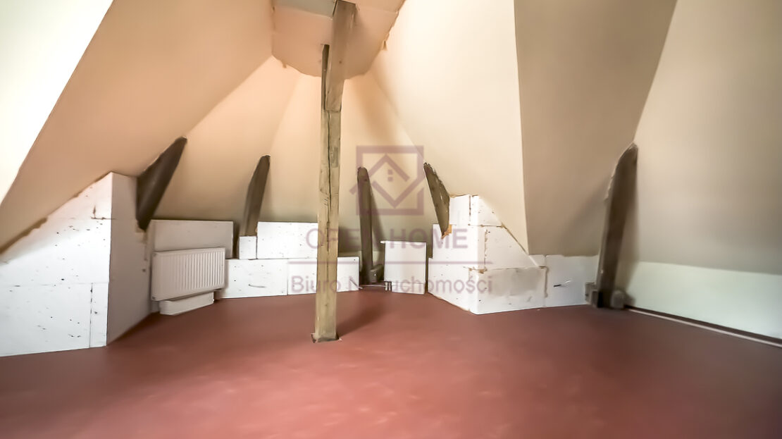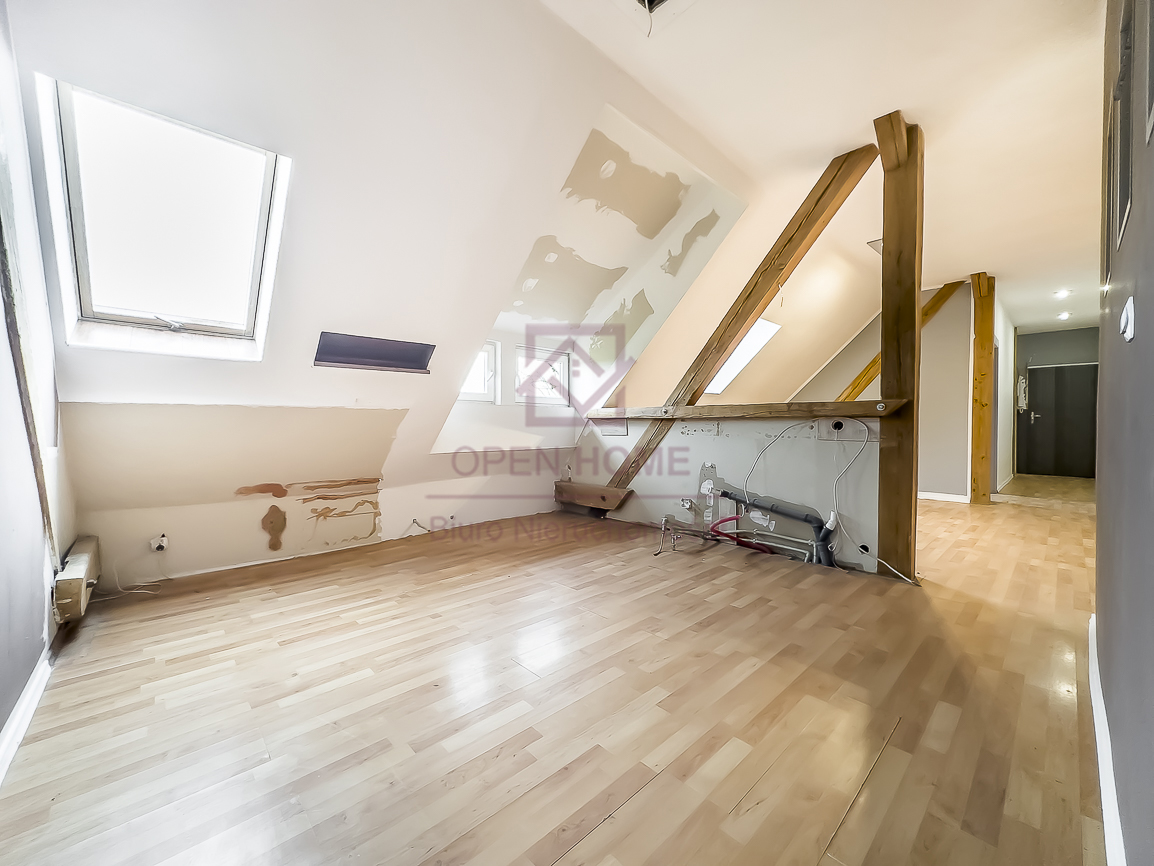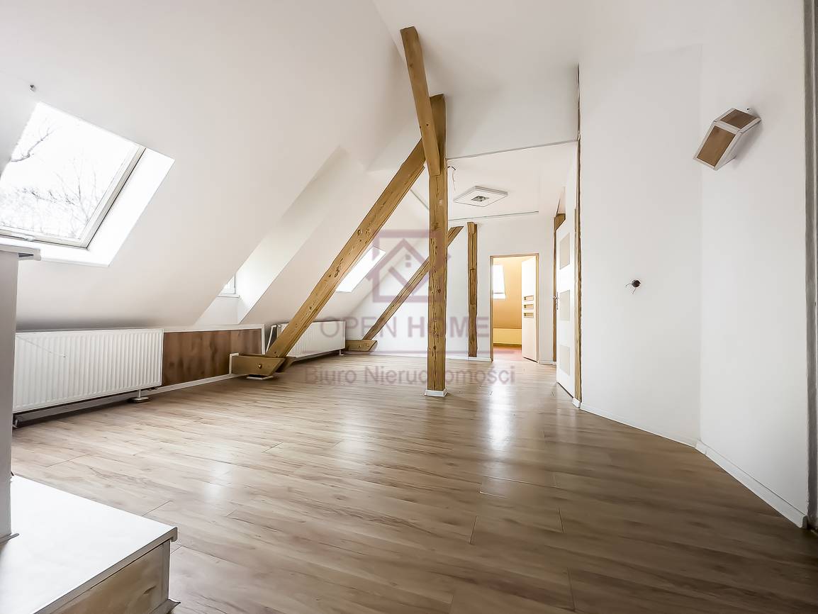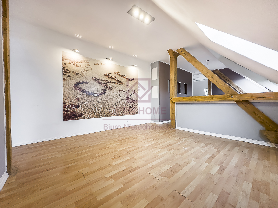 Mieszkanie jest niezwykle ustawne, jasne i daje poczucie dużej swobody aranżacyjnej. Powierzchnia użytkowa wynosi 101,41 m², natomiast powierzchnia „po podłodze” to 145,45 m², co sprawia, że wnętrze jest bardziej przestronne, a skosy i elementy konstrukcji dachu nadają mu wyjątkowego charakteru. Widoczne belki oraz oryginalne detale sprawiają, że lokal idealnie nadaje się do aranżacji w klimacie rustykalnym, przytulnym lub loftowym.